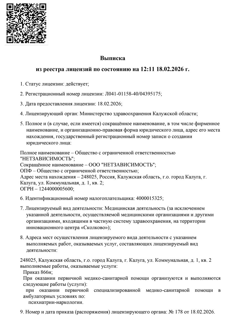 Клиника НетЗависимость пользуется высоким уровнем доверия среди клиентов, что подтверждается многочисленными положительными отзывами. Мы гарантируем качество и эффективность терапии на каждом этапе восстановления.